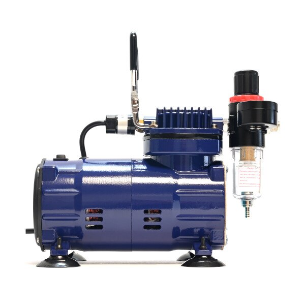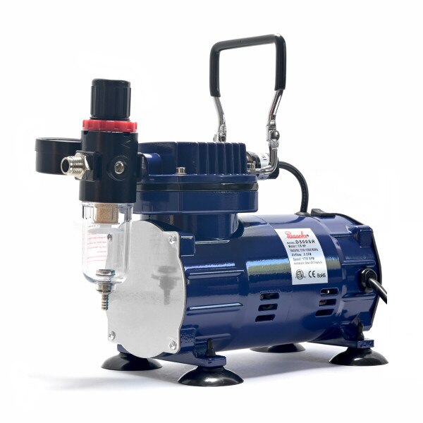 The Paasche D500SR airbrush compressor suitable for all airbrushes spraying properly thinned fluids. These oilless piston style airbrush compressors are capable of delivering 20-40 P.S.I. operating pressure depending on the airbrush being used. 110 volt AC power. delivers 4 C.F.M. at 20 P.S.I.. Includes compressor, pressure regulator, filter and gauge.