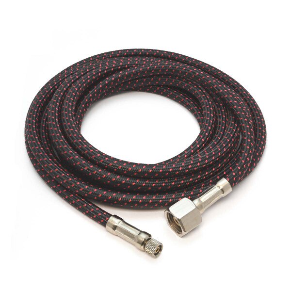 This Paasche 10' braided air hose is a big improvement over the plastic tubing used in starter kits and longer than braided lines that come with most airbrushes. One end has a fitting that matches your Paasche airbrush, the other end has a female fitting for an air compressor.