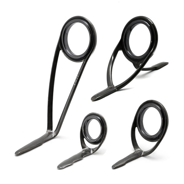 Fuji GMKBSG tangle-free guides feature a no-weld compact flared frame that exceeds ring diameter allowing looped line tangles to slip forward and release automatically. SiC inserts are abrasion resistant, smooth, and light. Slightly forward ring angle promotes fast self-starting tangle release. GMKBSG guides work well with mono, braid and fluorocarbon lines. CC Corrosion Control Gunmetal frame, SiC ring.