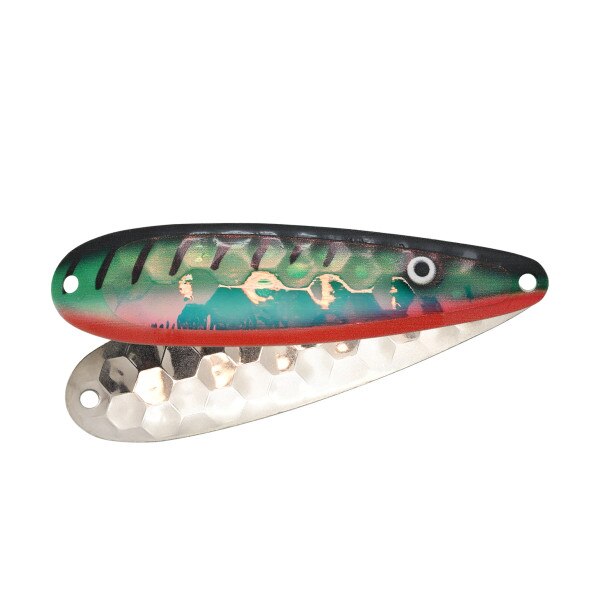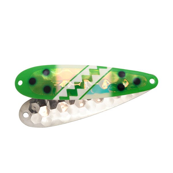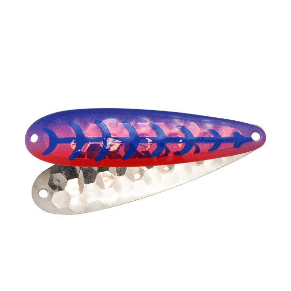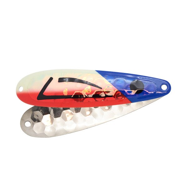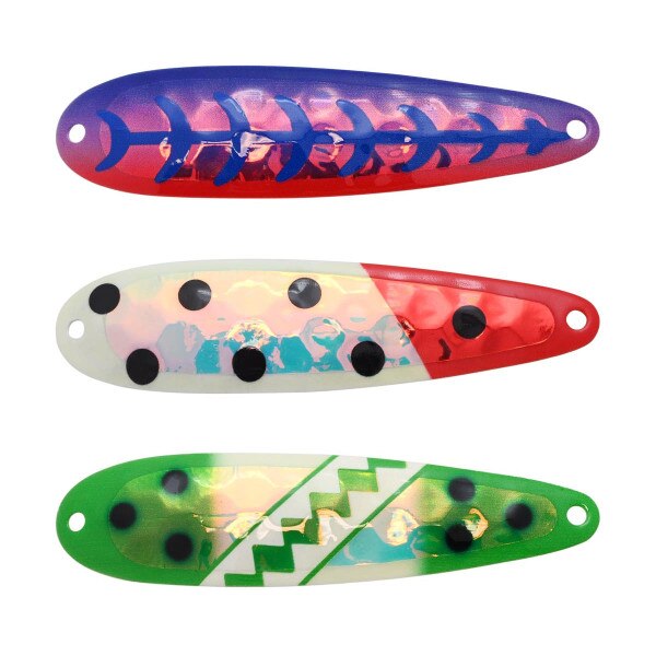 Ideal for trolling for salmon and other large predators, the ProEye Painted Magnum Trolling Spoons feature fish-catching colors with reflective foil for added attraction. Just add a split ring and treble hook. For 3-3/4" we recommend split ring size 5 and treble hook size 1. For 4 3/4" we recommend split ring size: #5. Recommended treble hook size: 2/0.
