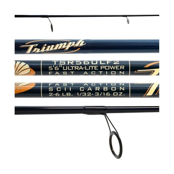 St. Croix Triumph Spinning Rods are durable and sensitive with impressive power. Built with legendary SCII Carbon blanks, these rods have the iconic look and feel of St. Croix rods. Outfitted with premium Seaguide XDPS Reel Seats and Seaguide SS304 Hard Aluminum Oxide guides, premium cork grips, and 2 coats of Flex Coat rod finish, Triumph Rods use only the best components in the industry at an incredible value. Two Piece. 5'6" Length. Ultra Light Power. Fast Action. See specifications for more details.